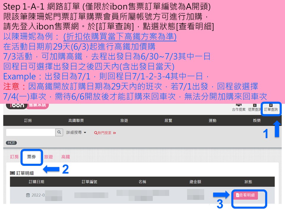 步驟1-A1.網路購票訂單可從活動日期前29天查看訂單明細