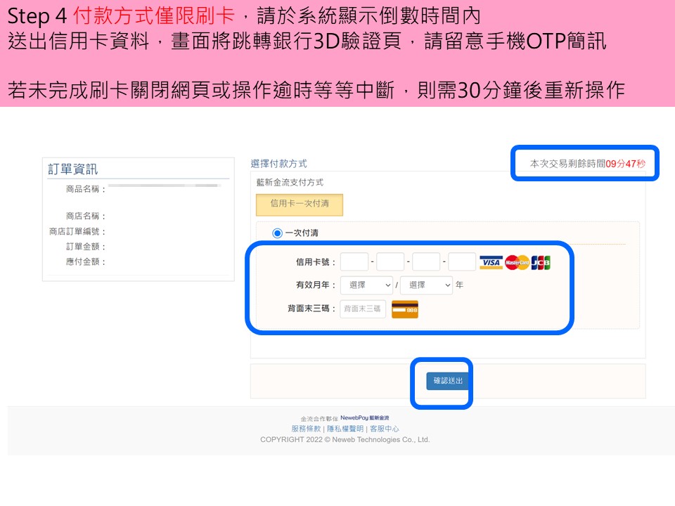 步驟4.輸入信用卡卡號完成刷卡作業