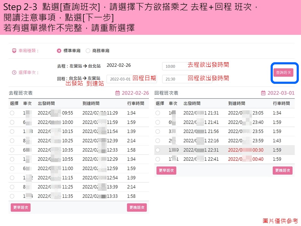 步驟2-3.選擇欲搭乘的乘車班次