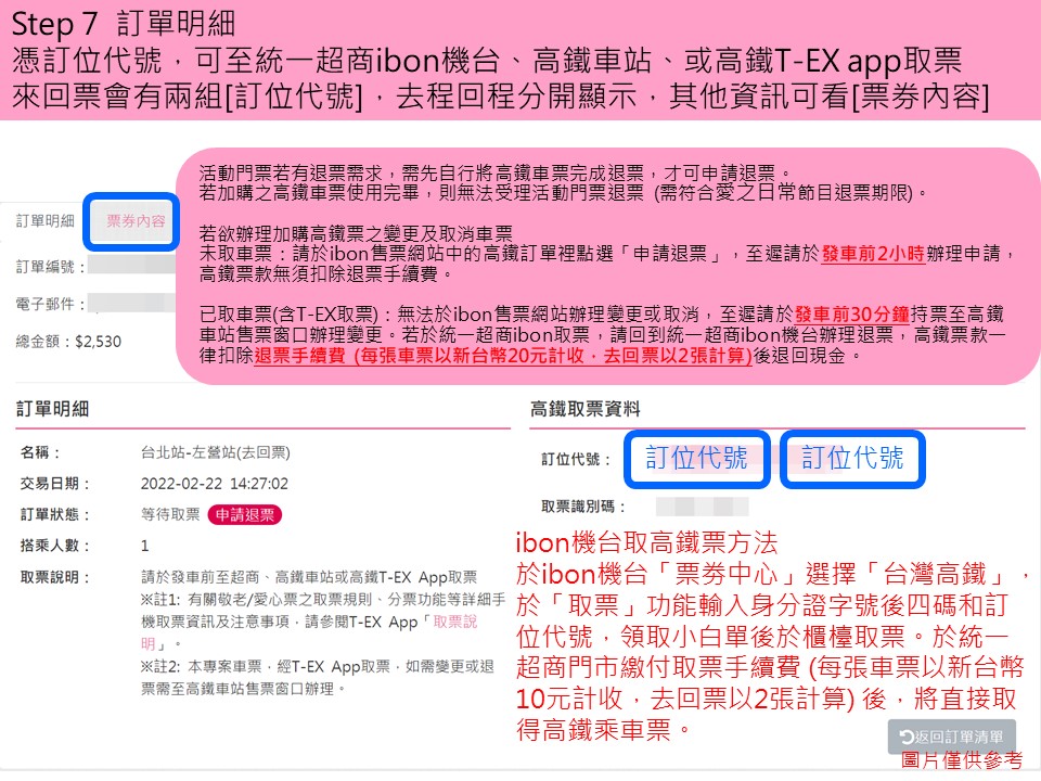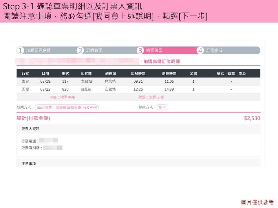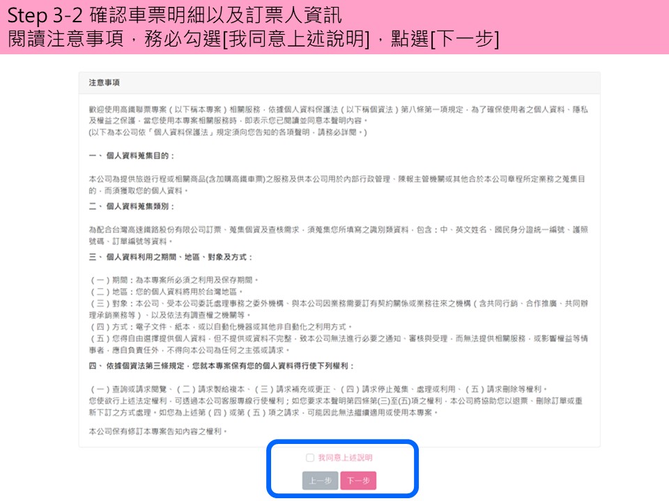 步驟3-1.確認車票明細及訂票人資料