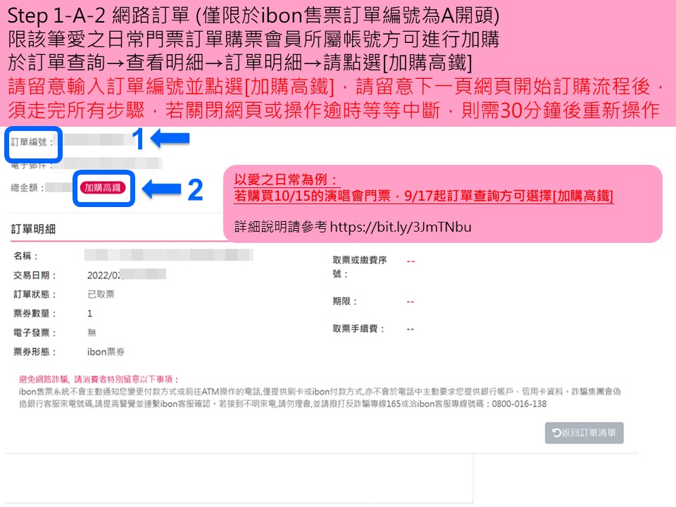 步驟1-A1.網路購票訂單可從活動日期前29天查看訂單明細
