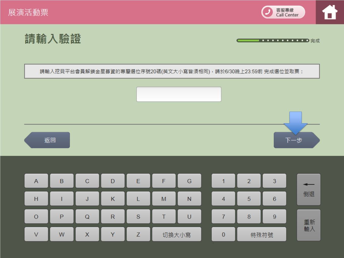 步驟6.請輸入挖貝平台專屬金星選位序號20碼