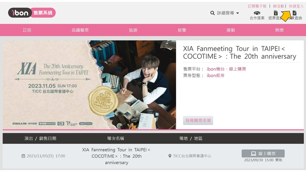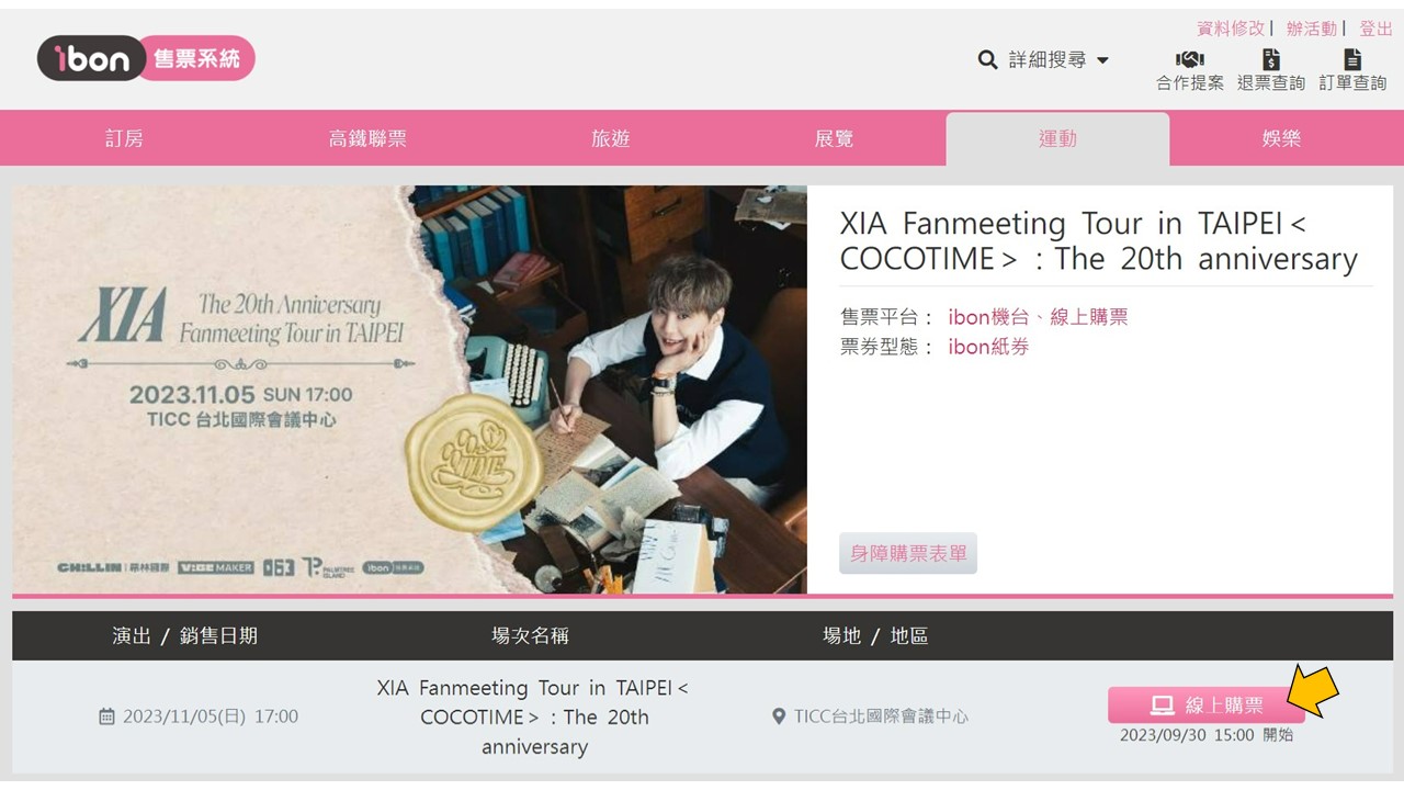 【XIA Fanmeeting Tour in TAIPEI <COCOTIME> :The 20th anniversary】 ibon 網站購票流程