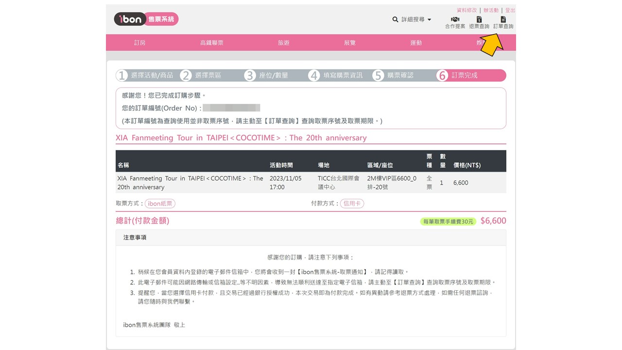 步驟10.刷卡成功即出示此畫面並點選訂單查詢