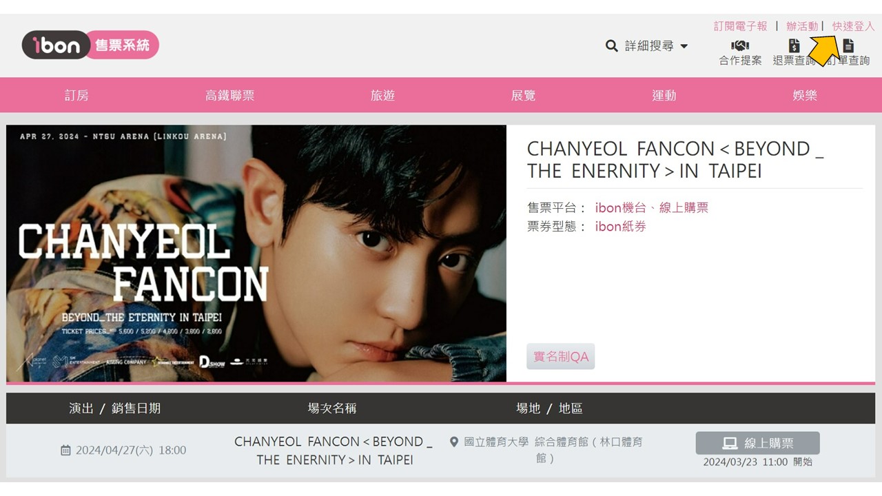 【CHANYEOL FANCON<BEYOND_THE ETERNITY>IN TAIPEI】 ibon 網站購票流程