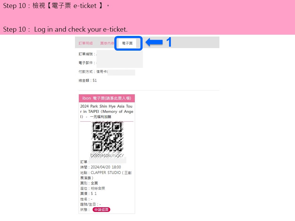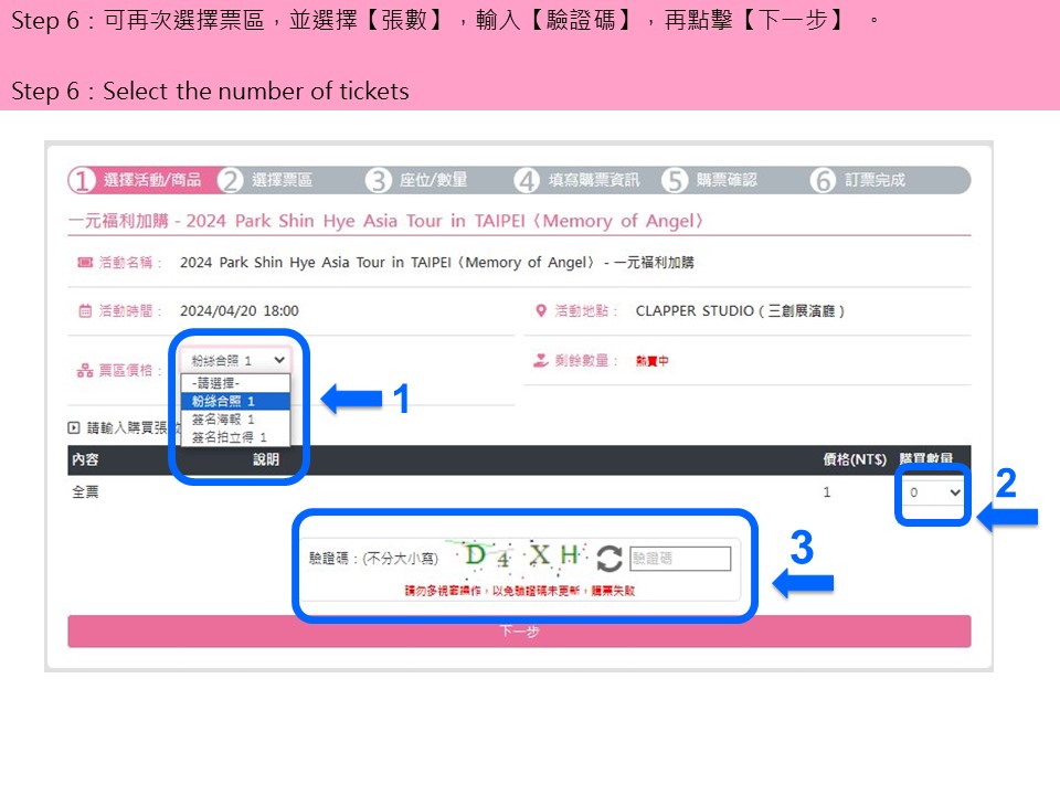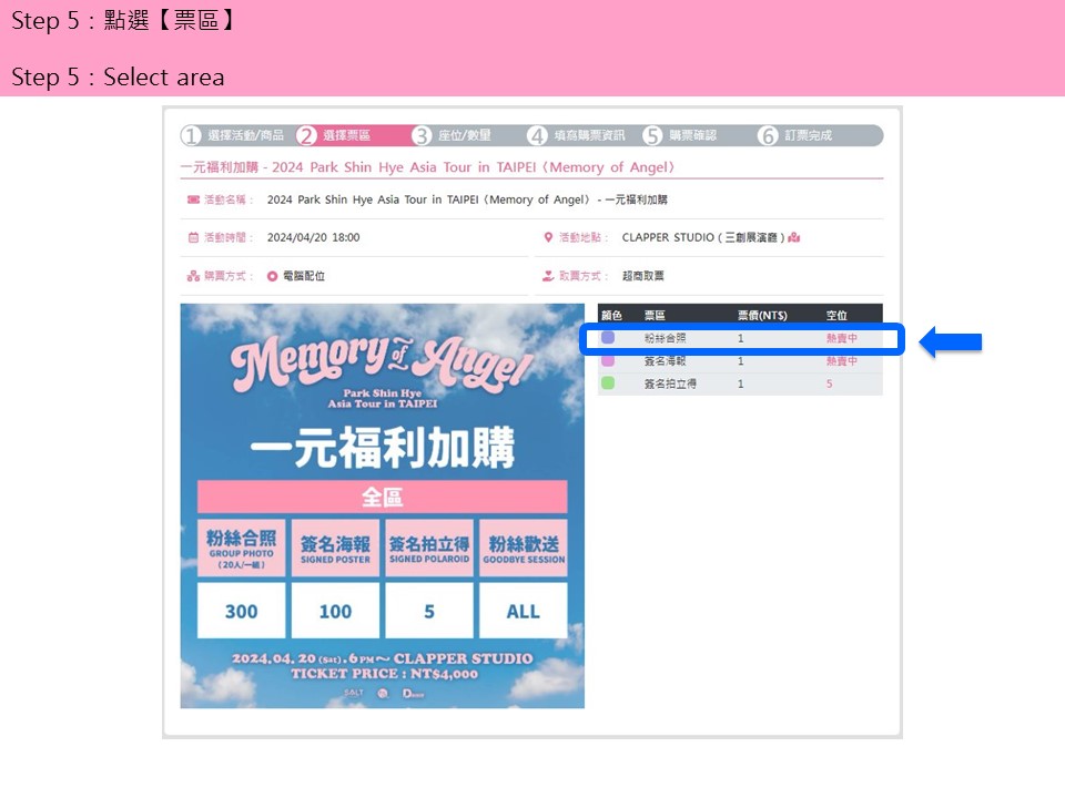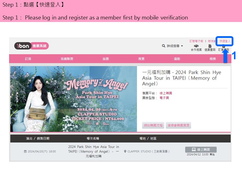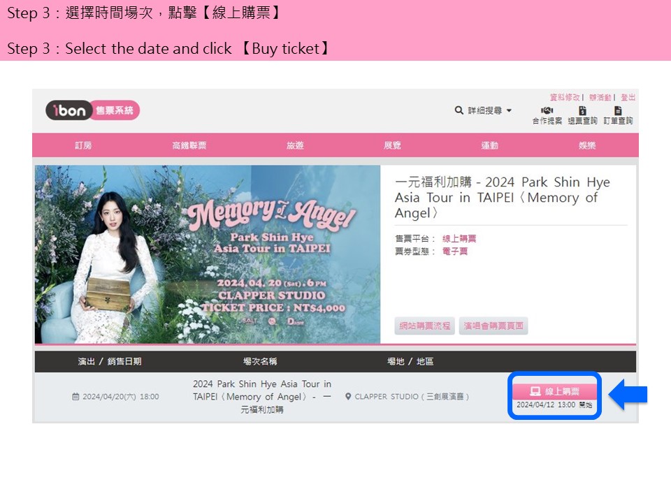 【2024 Park Shin Hye Asia Tour in TAIPEI(Memory of Angel)-一元福利加購】ibon 網站購票流程