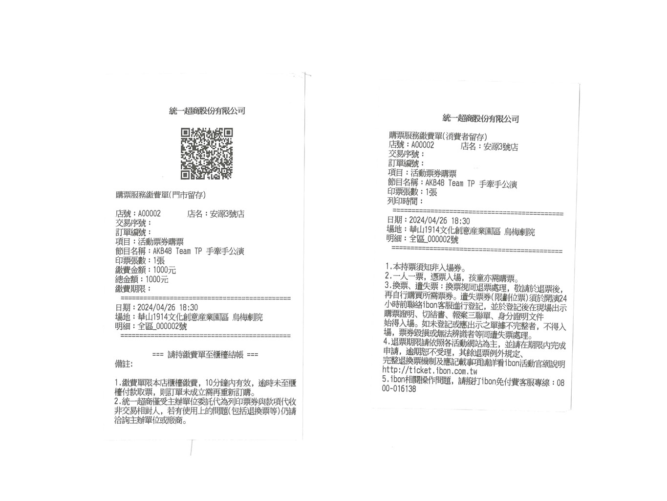 【AKB48 Team TP - 4月手牽手公演】 ibon 機台購票流程