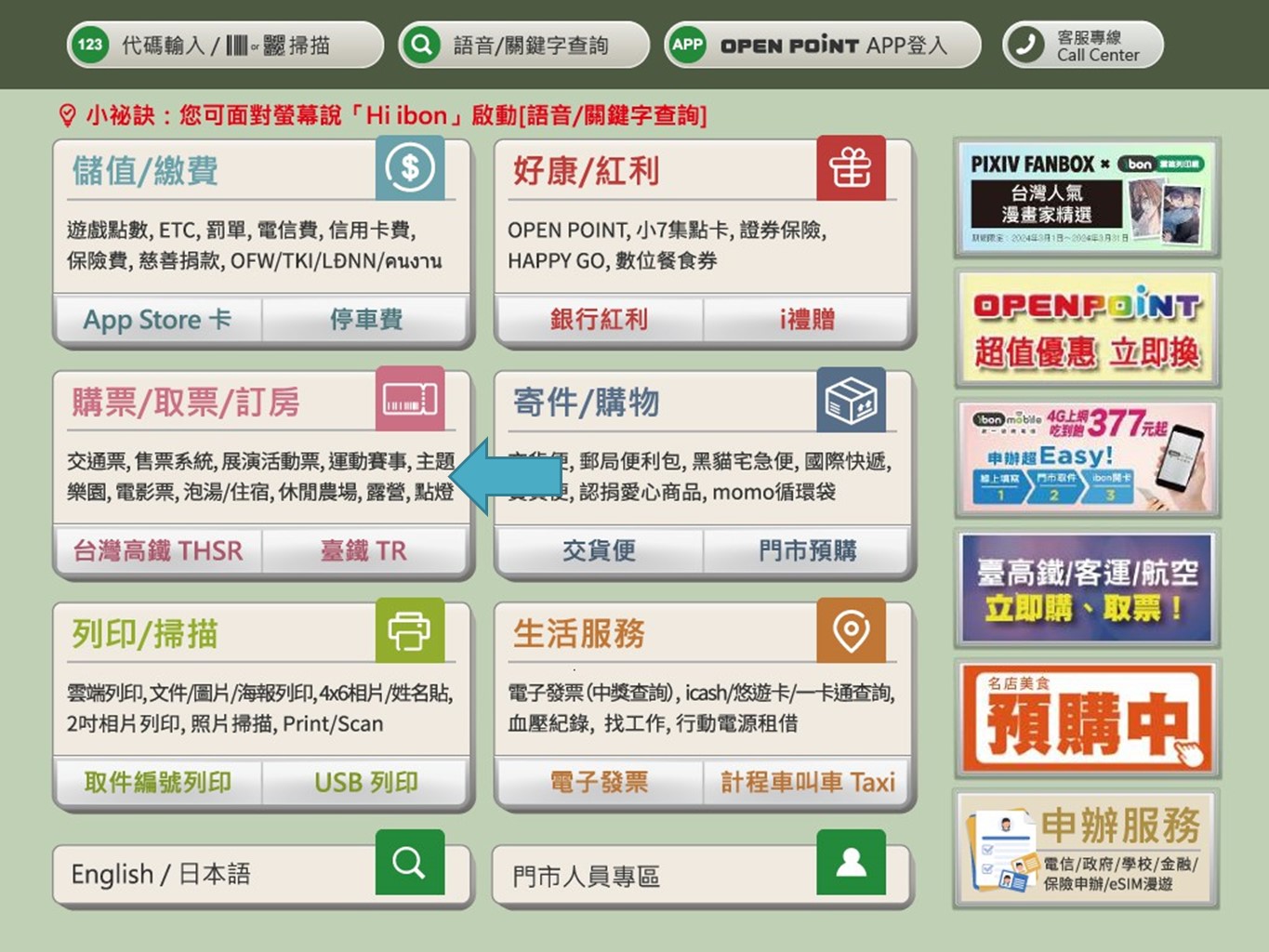 步驟1.點選【購票/取票/訂房】