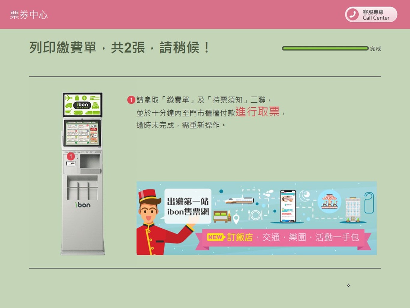 步驟8.列印繳費單並持取票單據至櫃檯領取ibon票券