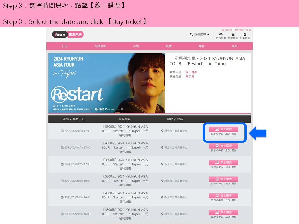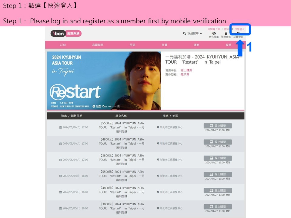 【2024 KYUHYUN ASIA TOUR ‘Restart’ in Taipei-一元福利加購】ibon 網站購票流程