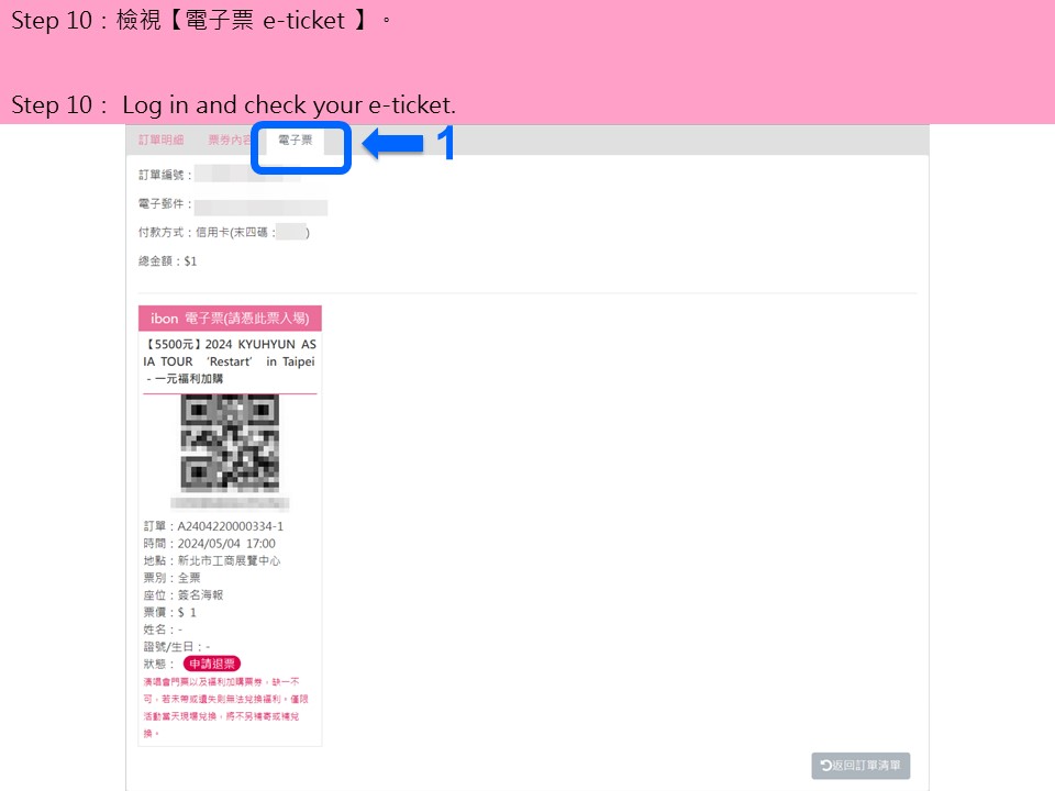 購/取票流程僅供參考,不代表實際購買情況