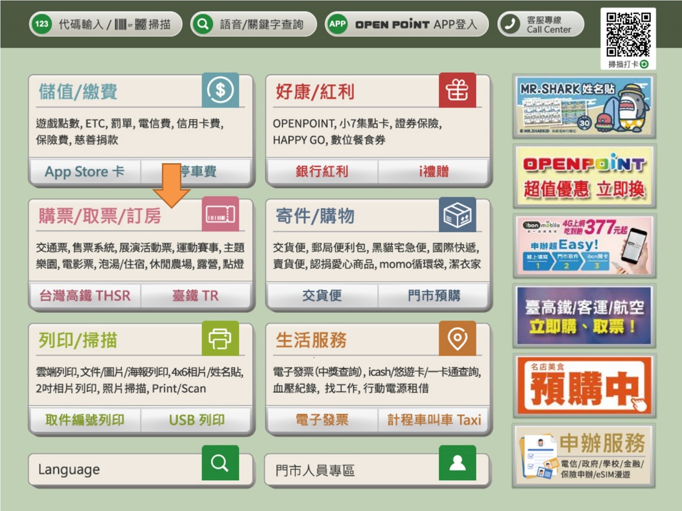 步驟1.點選【購票/取票/訂房】