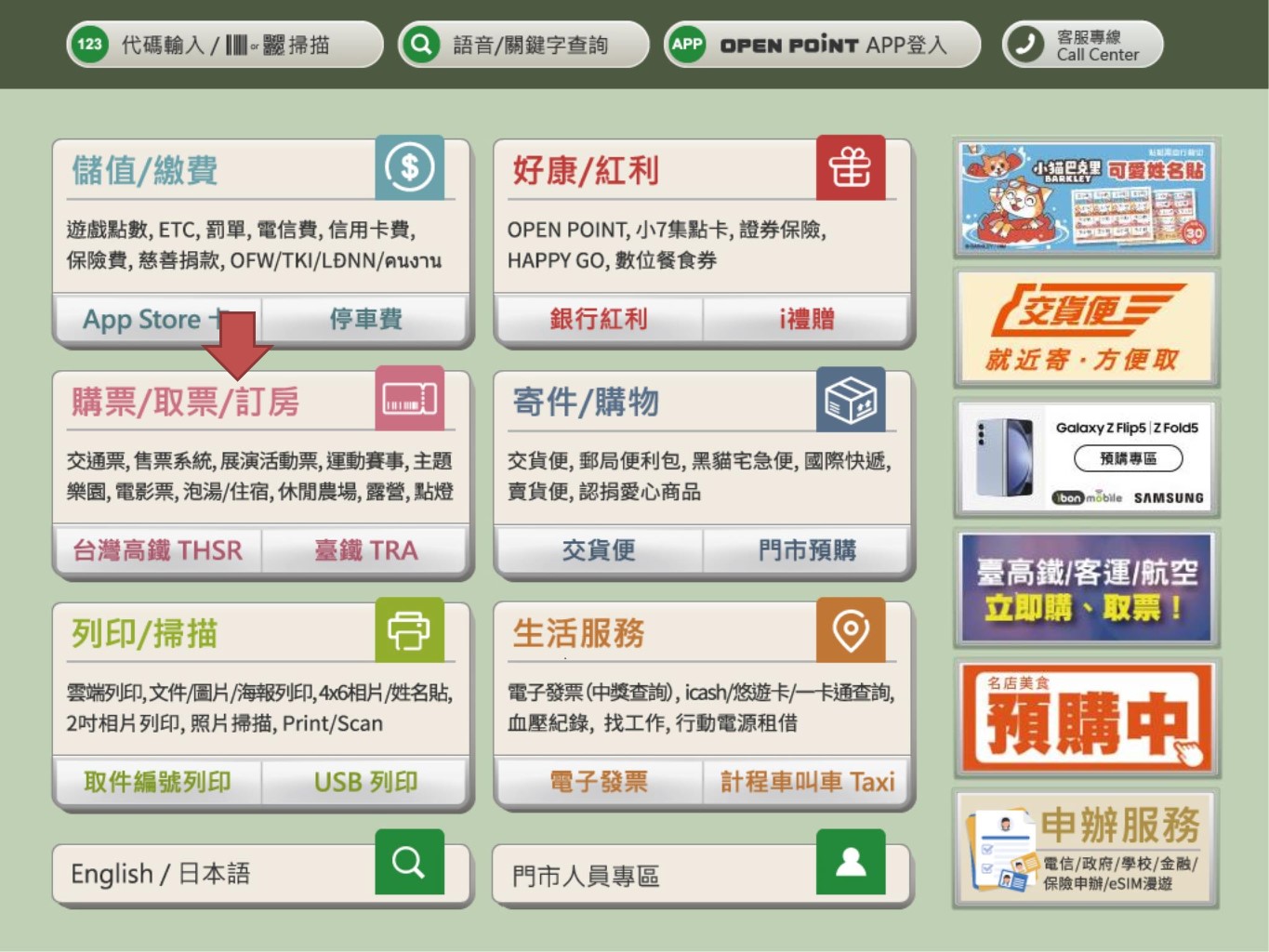 步驟1.點選【購票/取票/訂房】