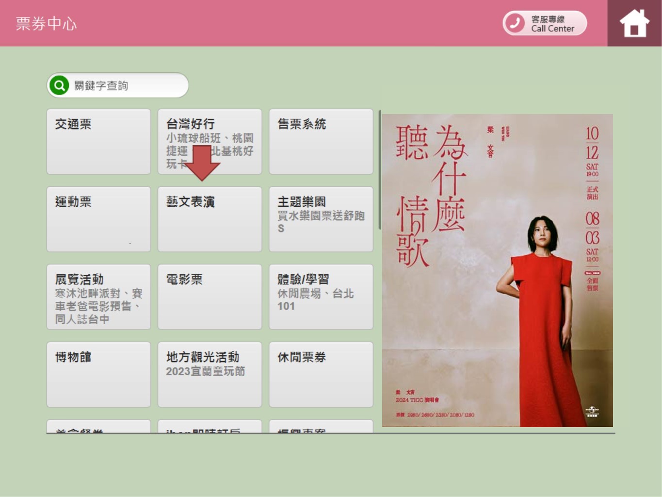 Step 2.Click【藝文表演】