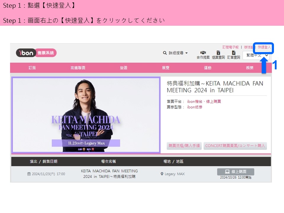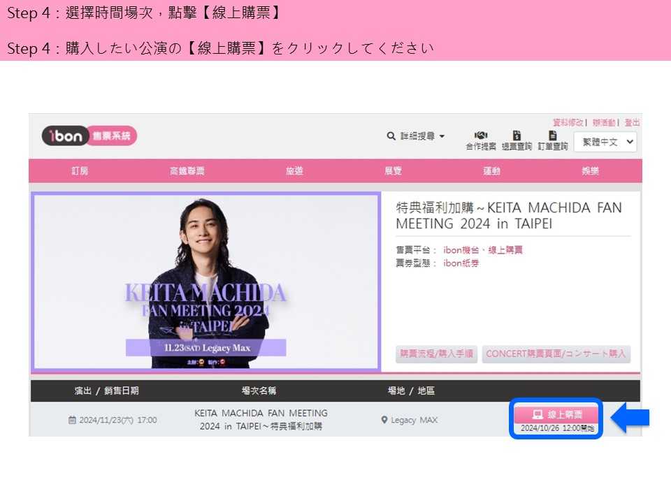 ibon 網站購票流程/チケット購入サイトでの購入手順