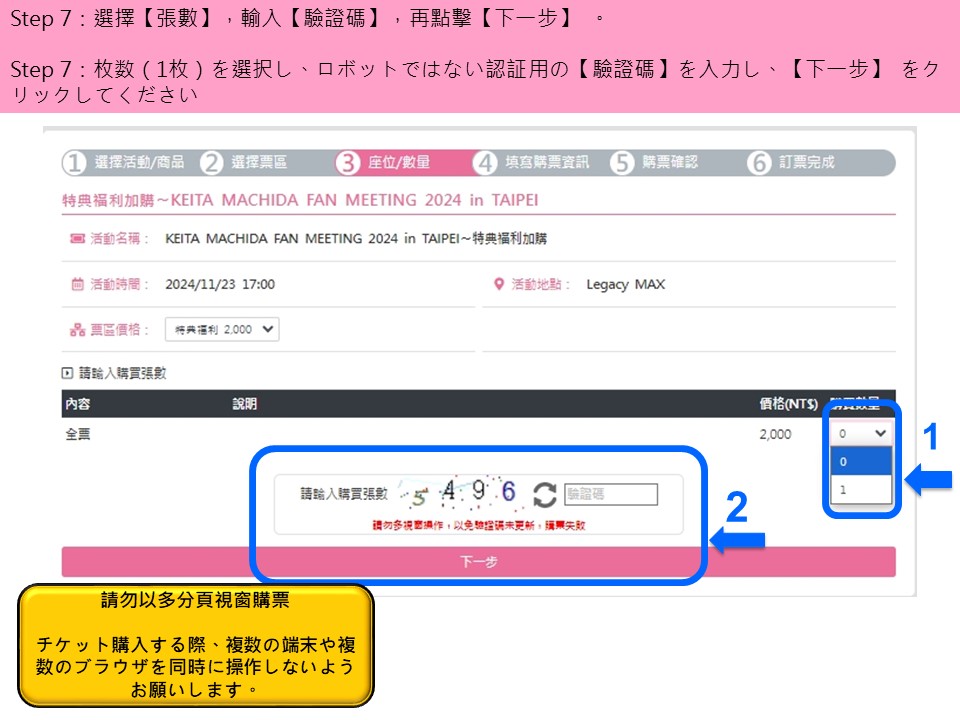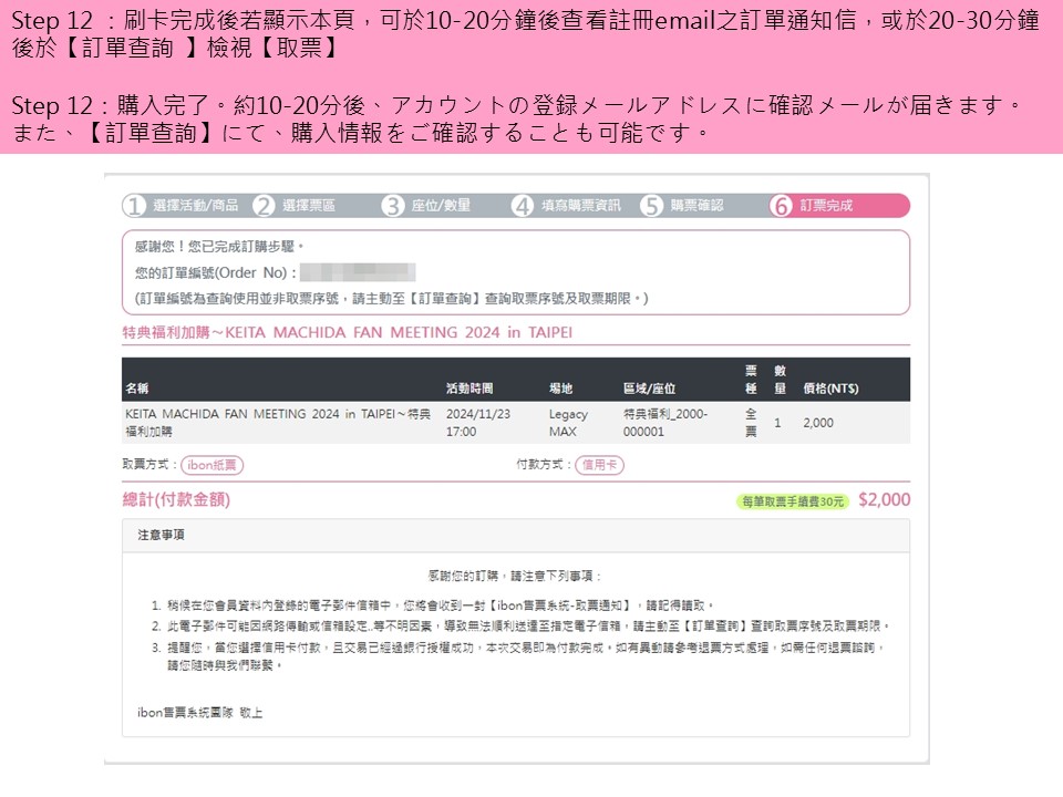 購/取票流程僅供參考,不代表實際購買情況/参考までご利用してください。