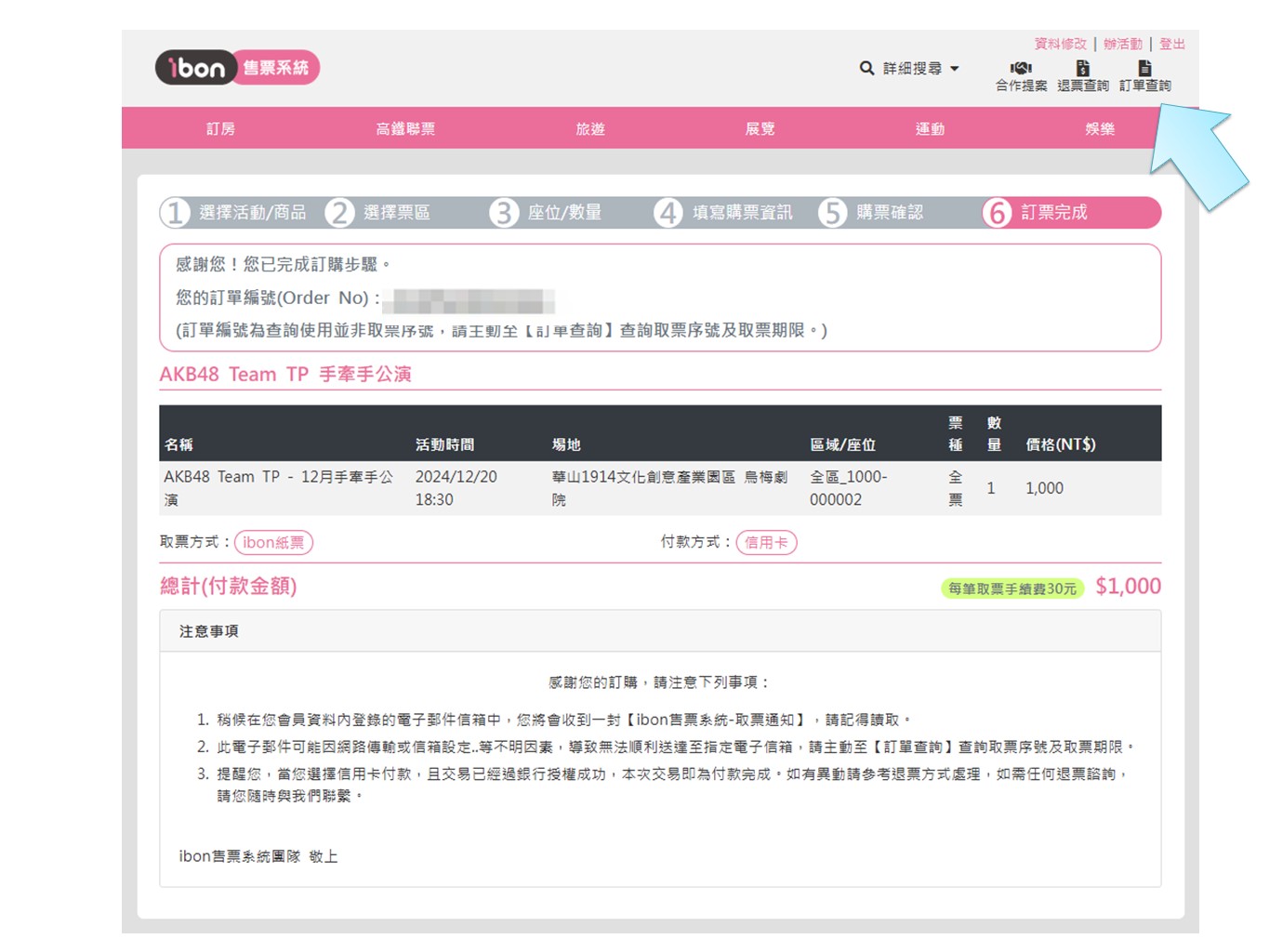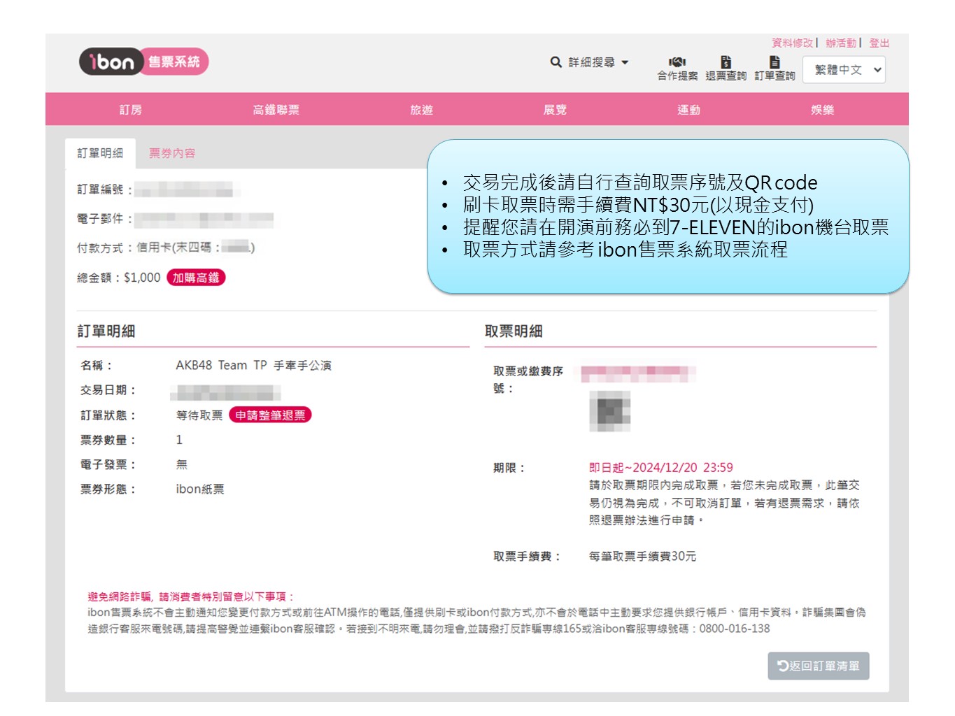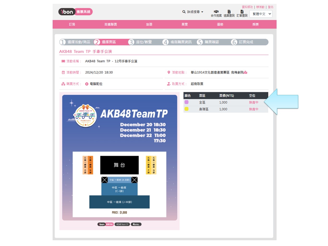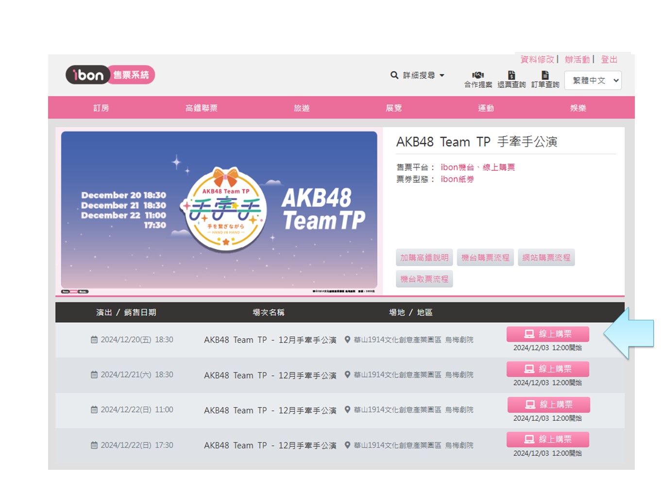 【AKB48 Team TP - 12月手牽手公演】 ibon 網站購票流程