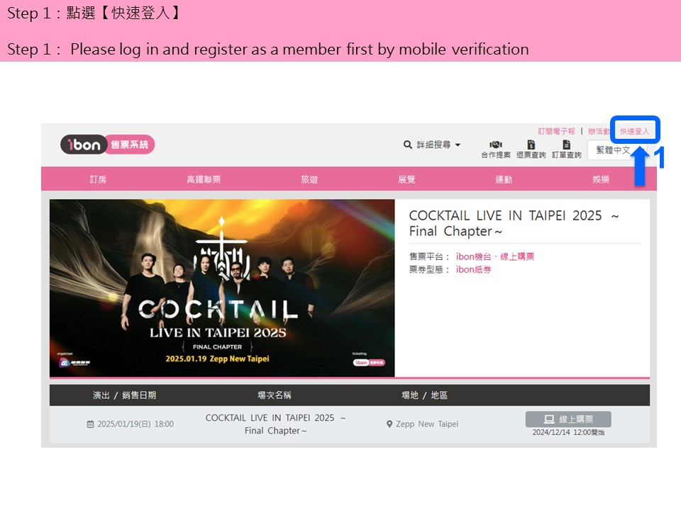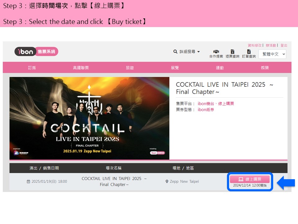 【COCKTAIL LIVE IN TAIPEI 2025 ~Final Chapter~】ibon 網站購票流程
