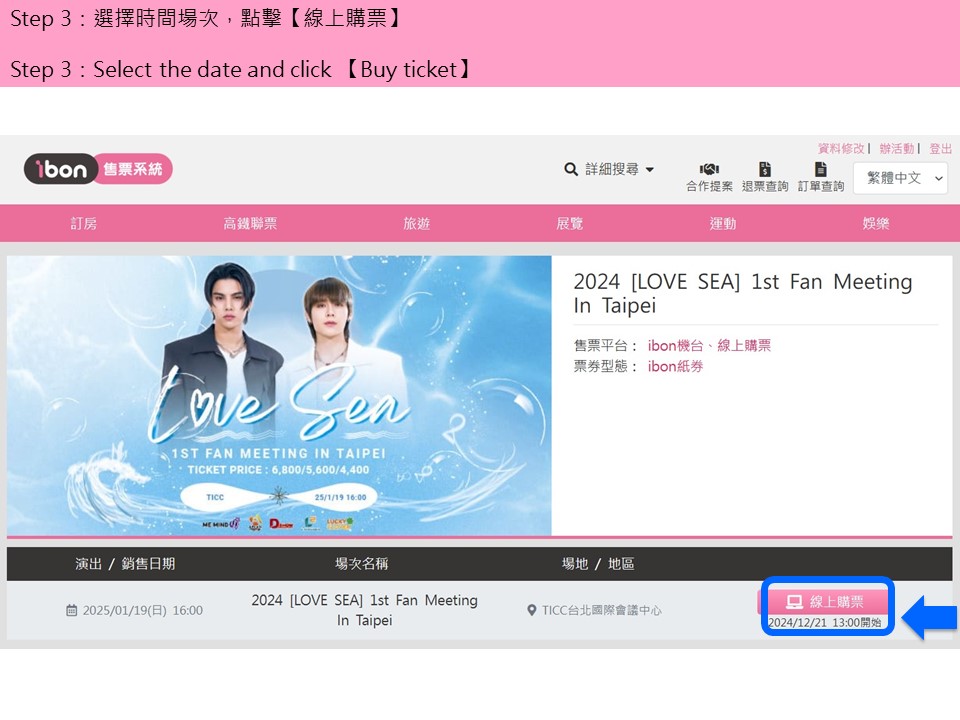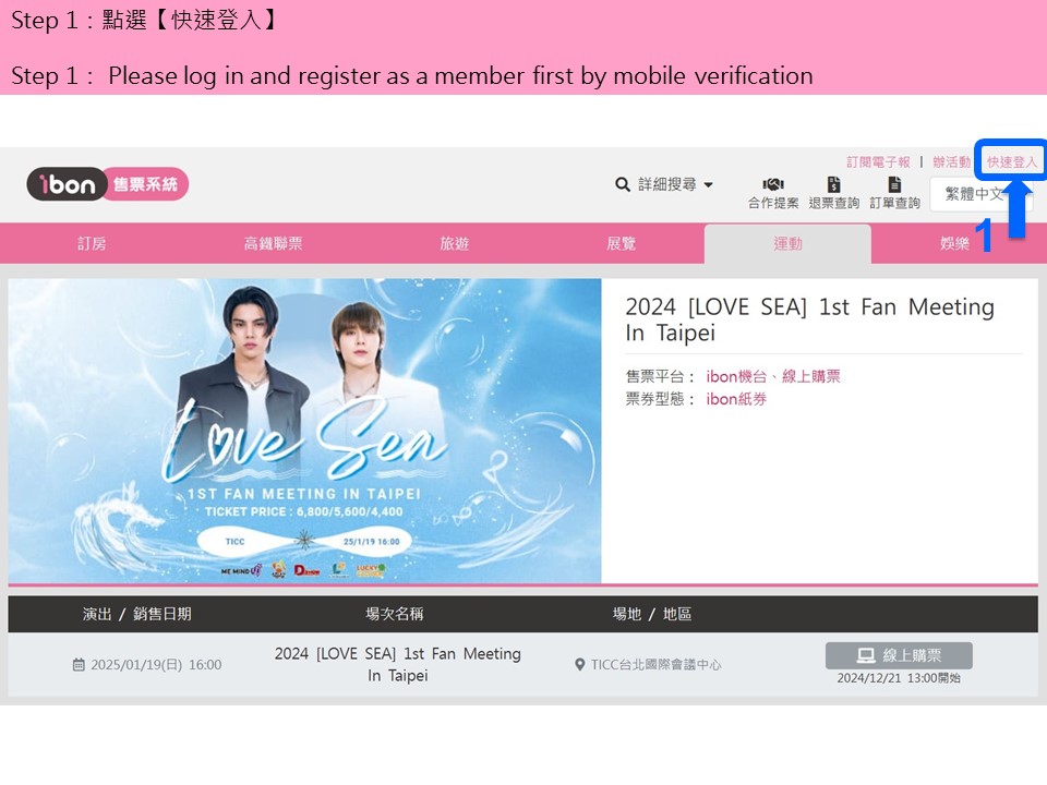 【2024 [LOVE SEA] 1st Fan Meeting In Taipei】ibon 網站購票流程