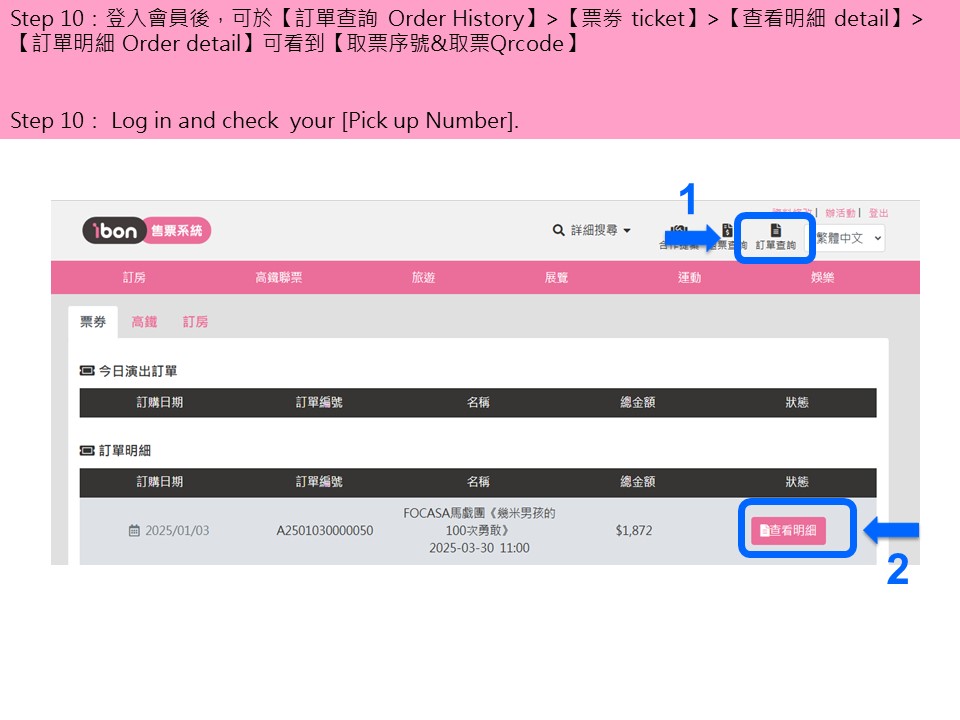 購/取票流程僅供參考,不代表實際購買情況