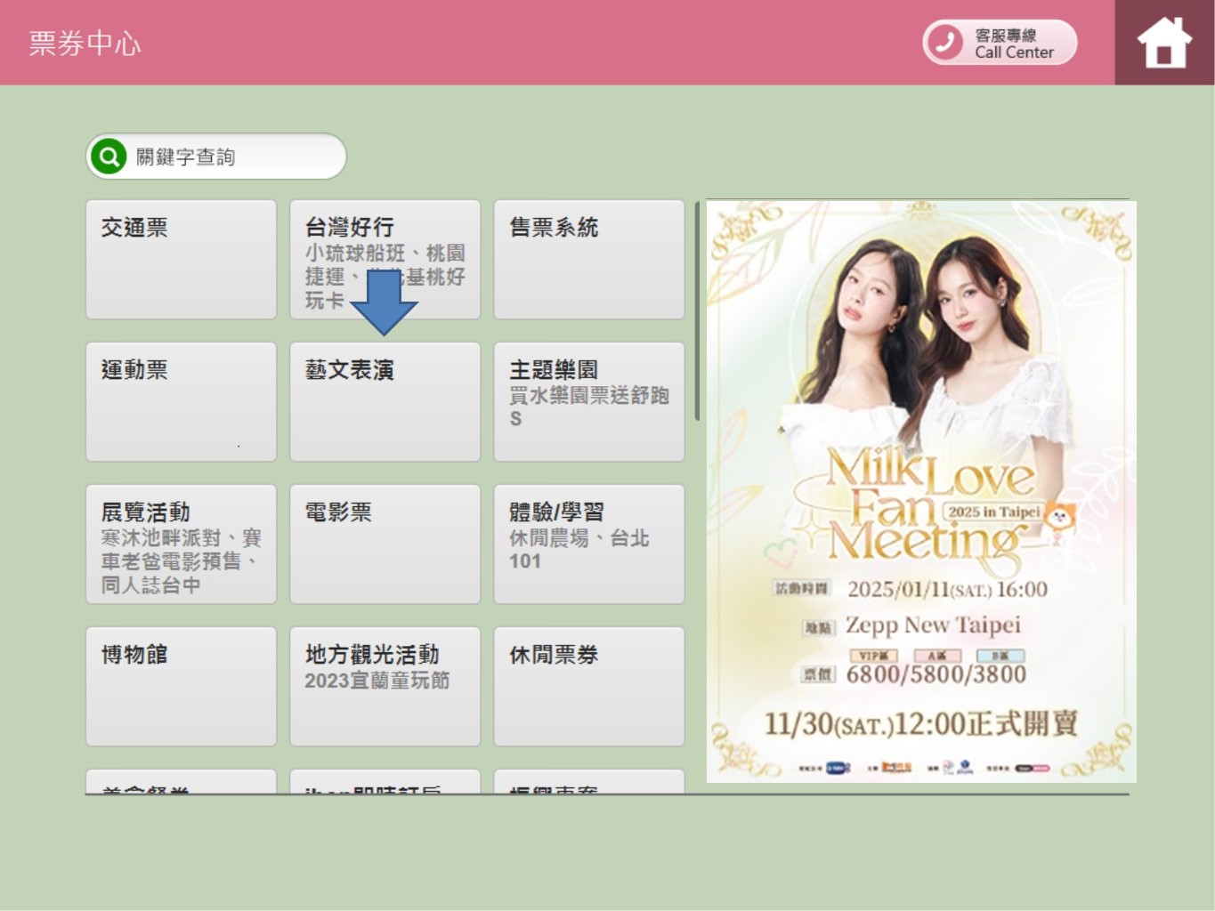 Step 2.Click【藝文表演】