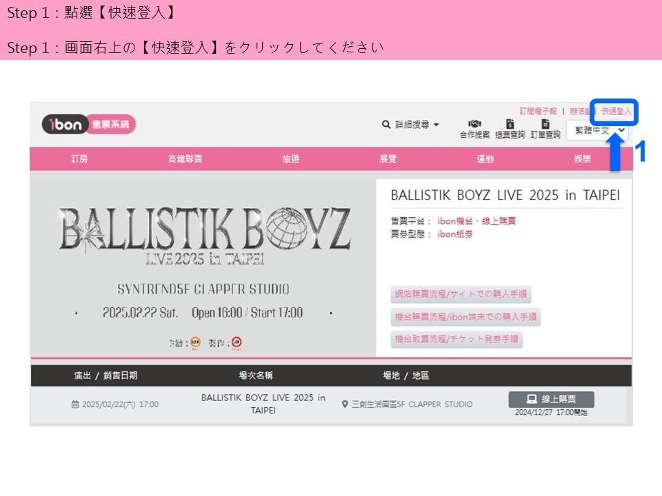 ibon 網站購票流程/チケット購入サイトでの購入手順