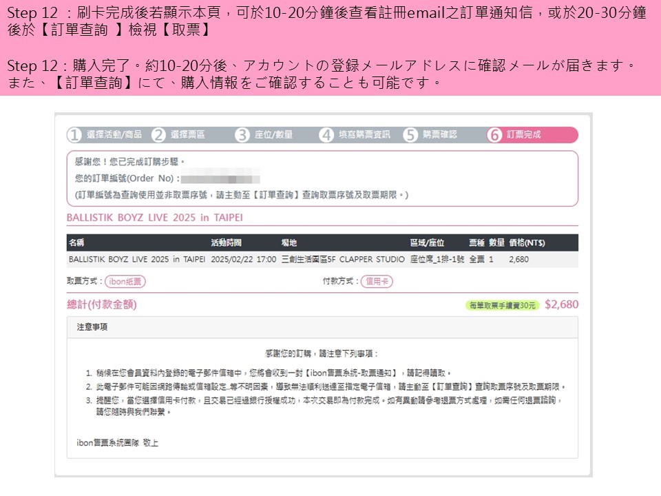 購/取票流程僅供參考,不代表實際購買情況/参考までご利用してください。