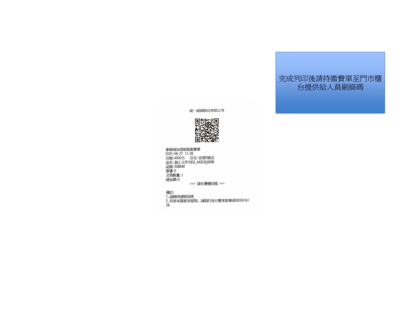 繳費單樣張並記得務必提供給門市人員刷條碼