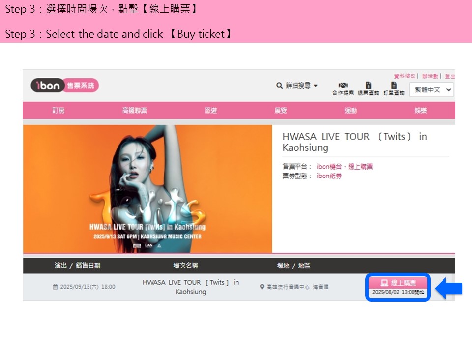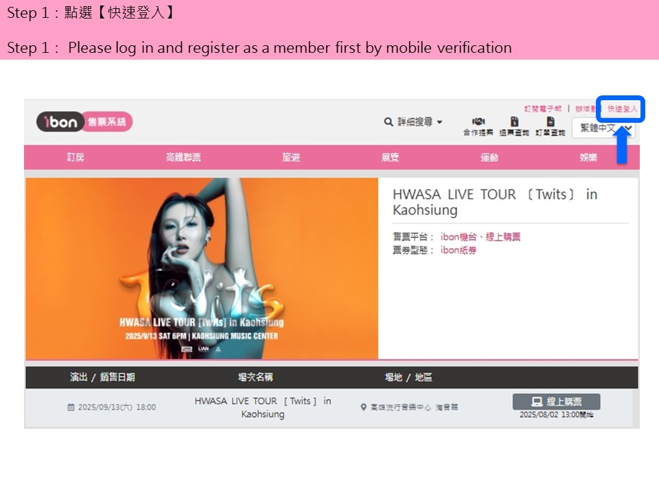 【HWASA LIVE TOUR [Twits] in Kaohsiung】ibon 網站購票流程