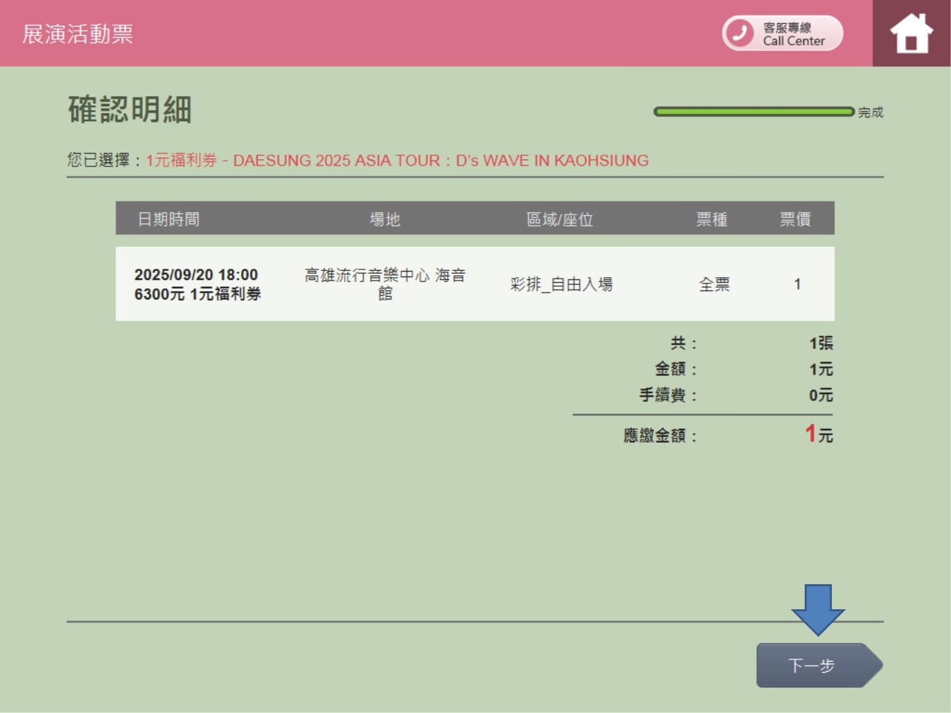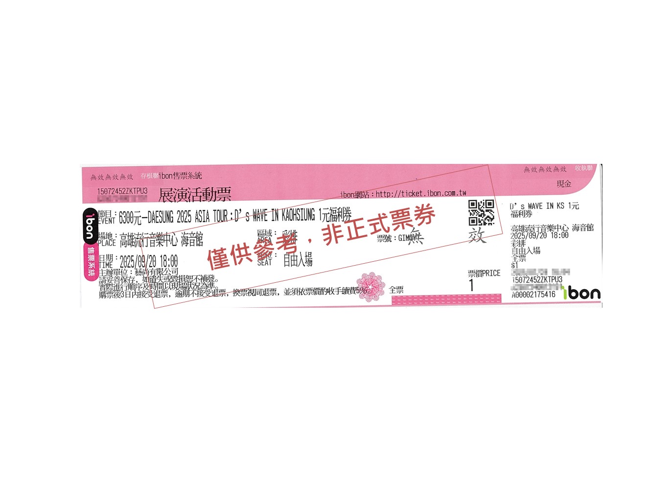 【DAESUNG 2025 ASIA TOUR: D's WAVE IN KAOHSIUNG-1元福利券】 ibon 購票流程