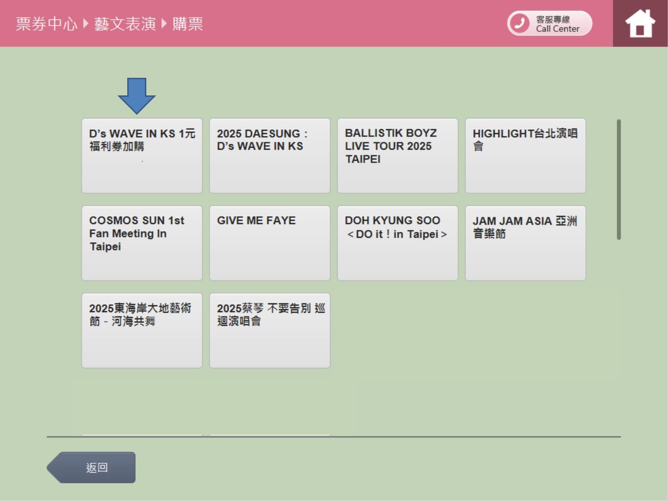 步驟1.點選【購票/取票/訂房】