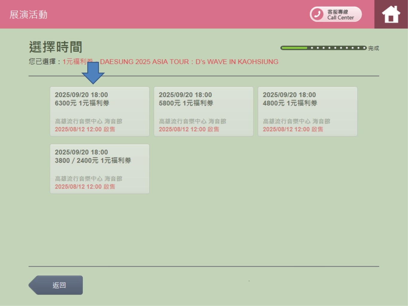 步驟6.選擇購買的演出票券票價