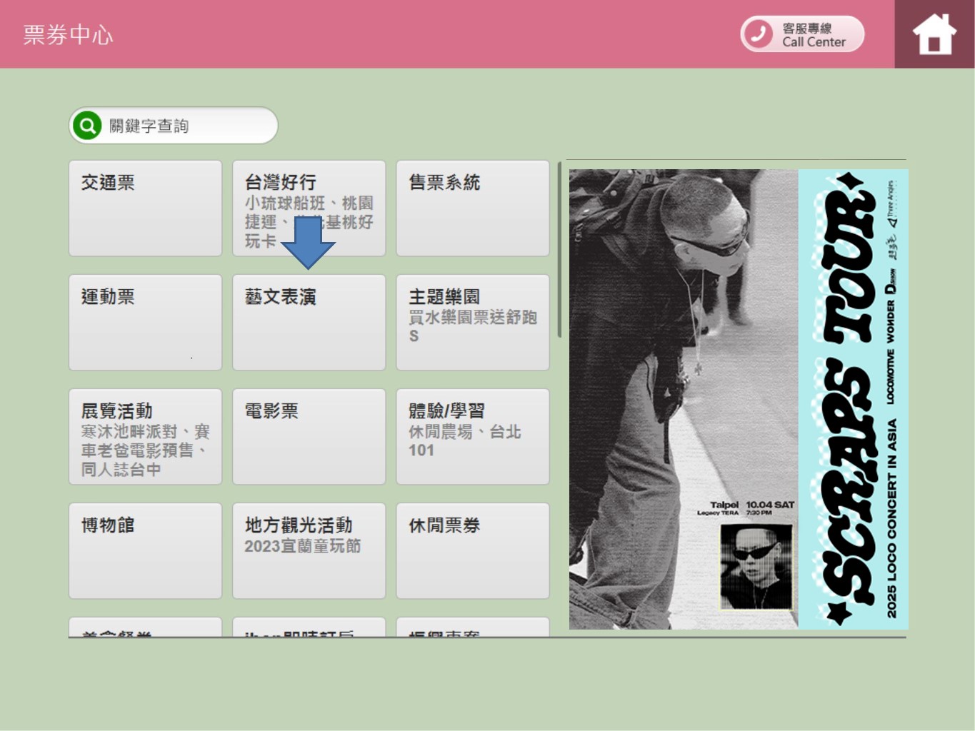 Step 2.Click【藝文表演】