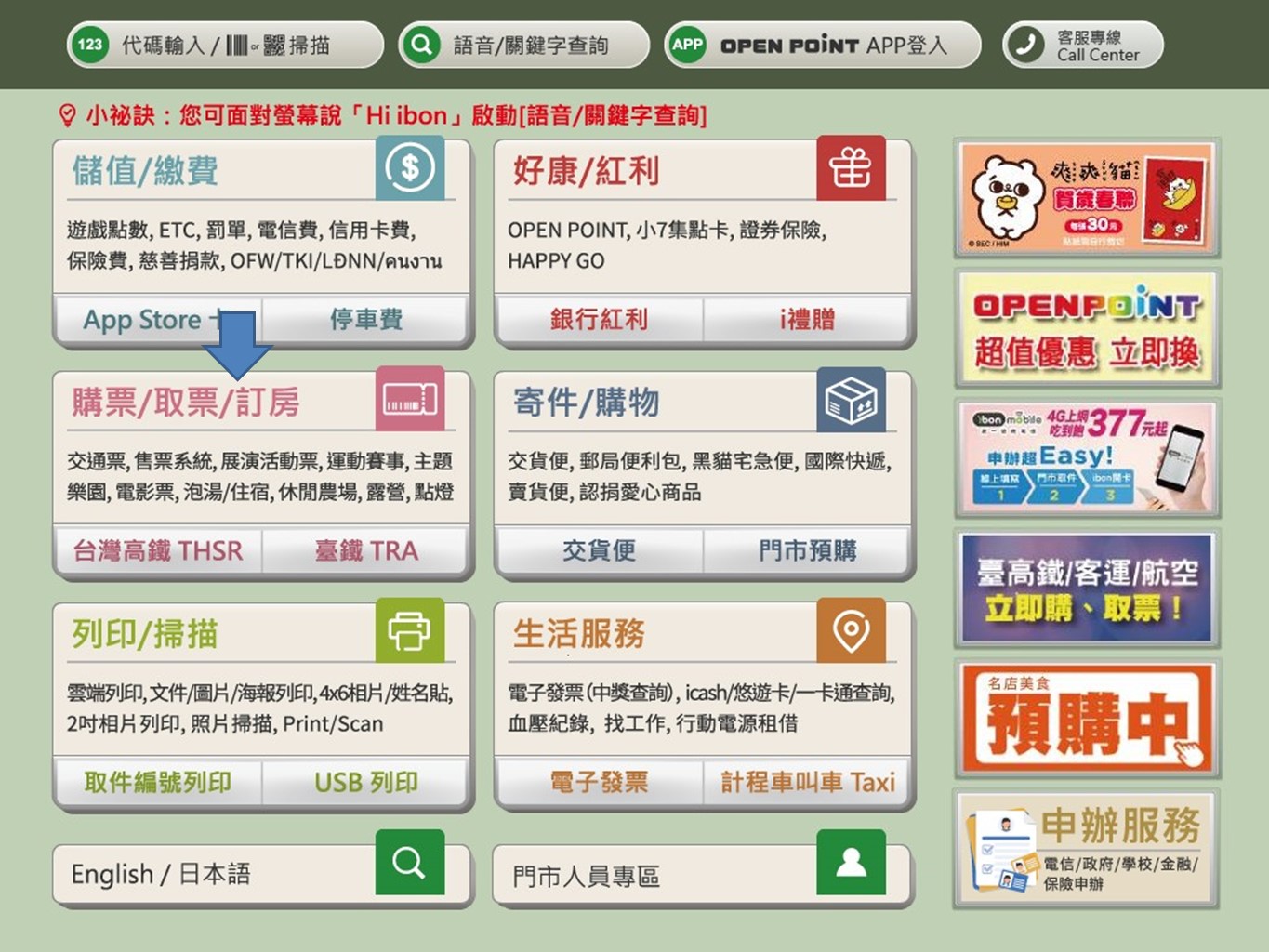 步驟1.點選【購票/取票/訂房】