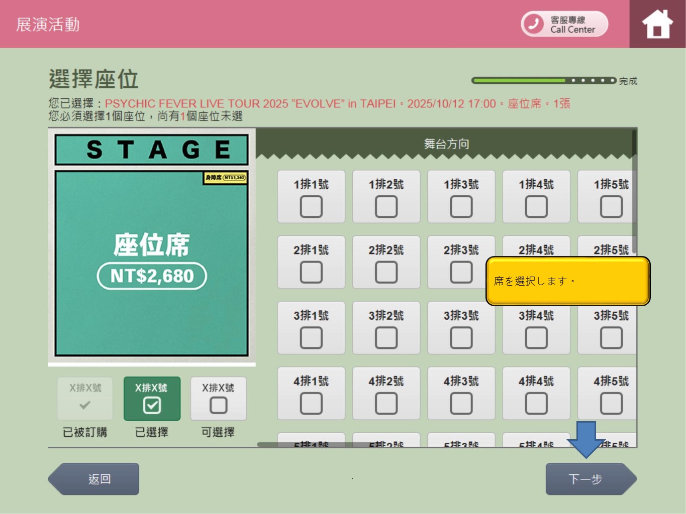 步驟6.選擇日期及場次