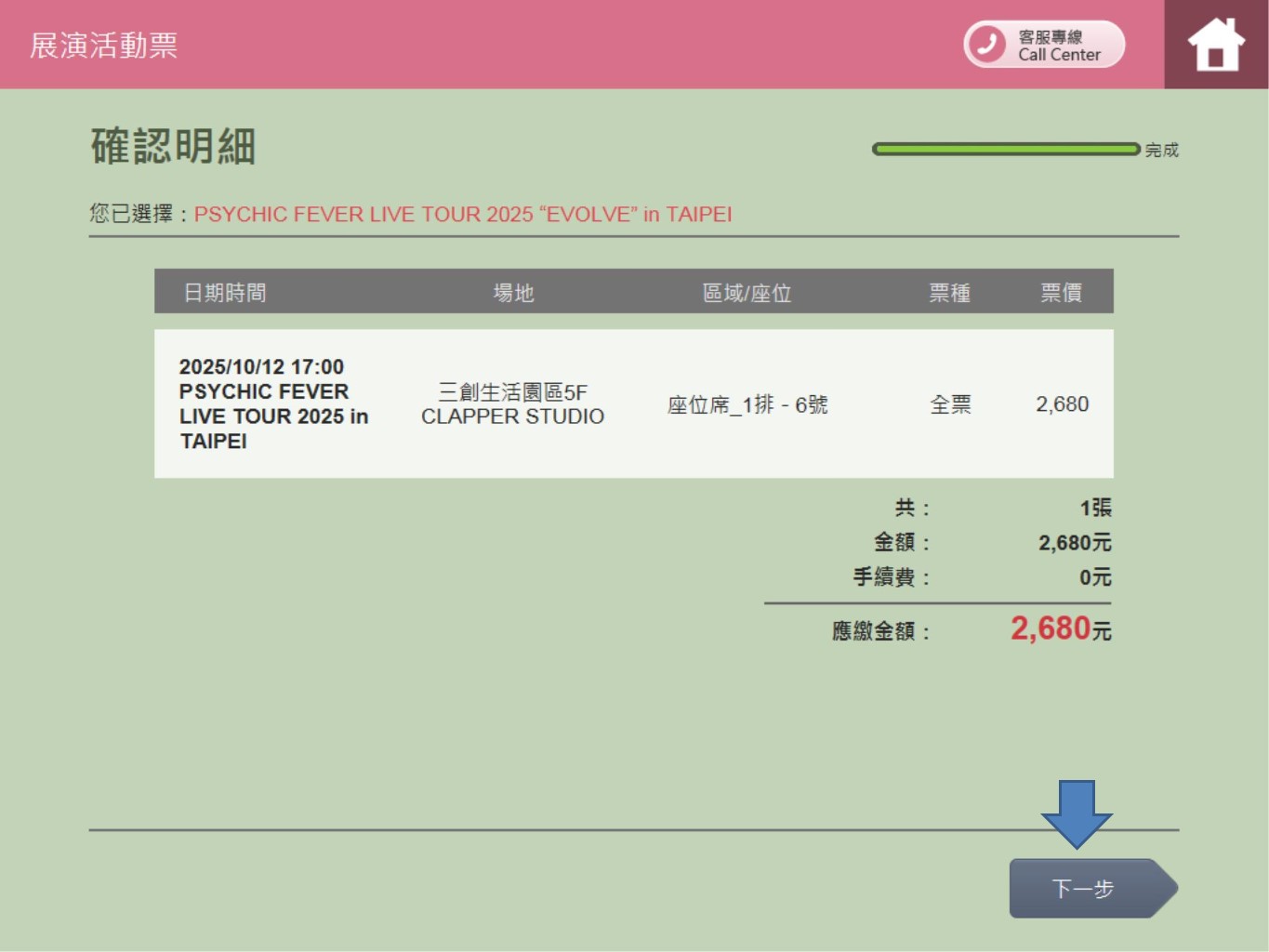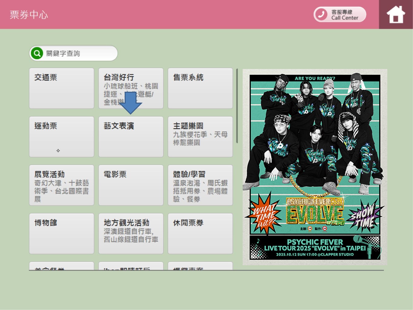 步驟4.點選【PSYCHIC FEVER LIVE TOUR in TAIPEI】