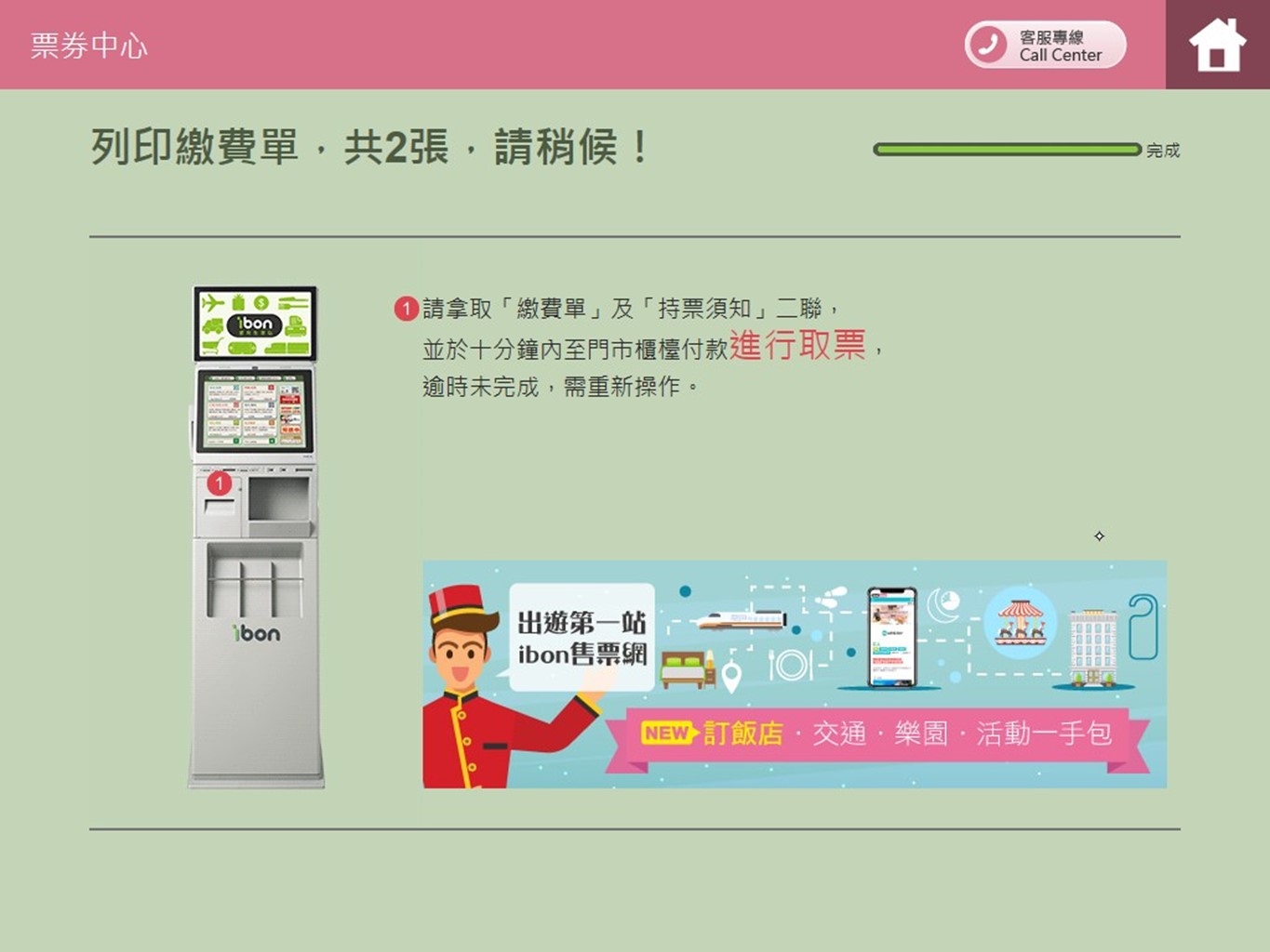 步驟14.列印繳費單並持取票單據至櫃檯領取ibon票券