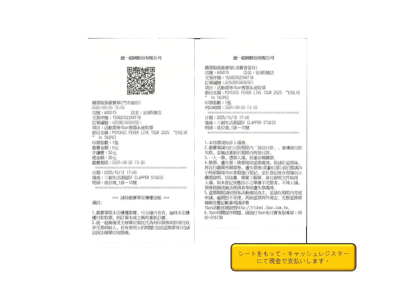 Step 14.シートを持って、キャッシュレジスターにて現金で支払いします