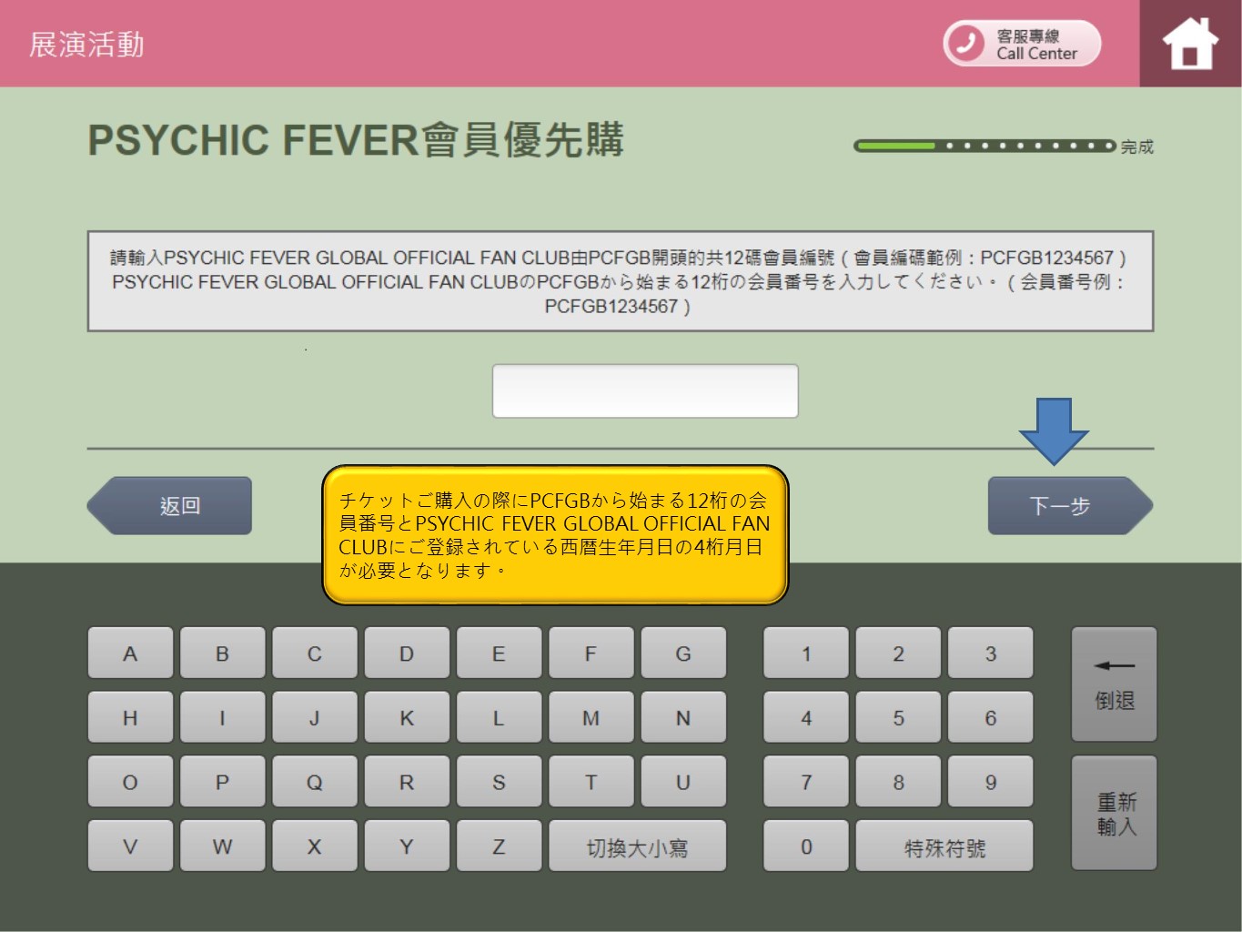步驟7.會員優先購時,輸入會員編號