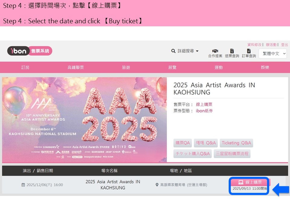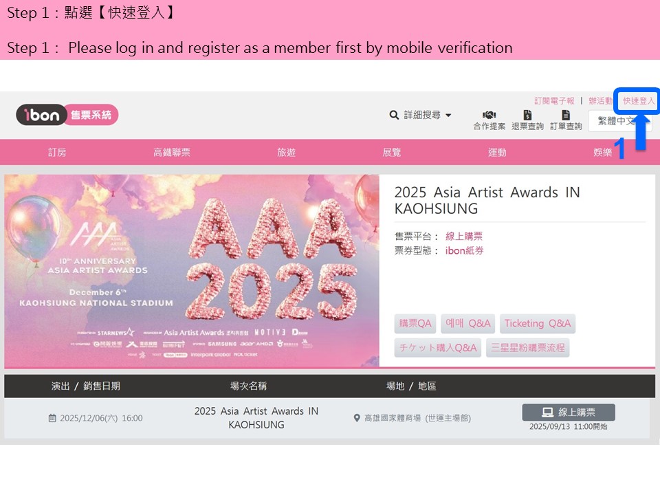【2025 Asia Artist Awards IN KAOHSIUNG】ibon 網站購票流程