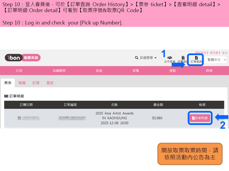 購/取票流程僅供參考,不代表實際購買情況