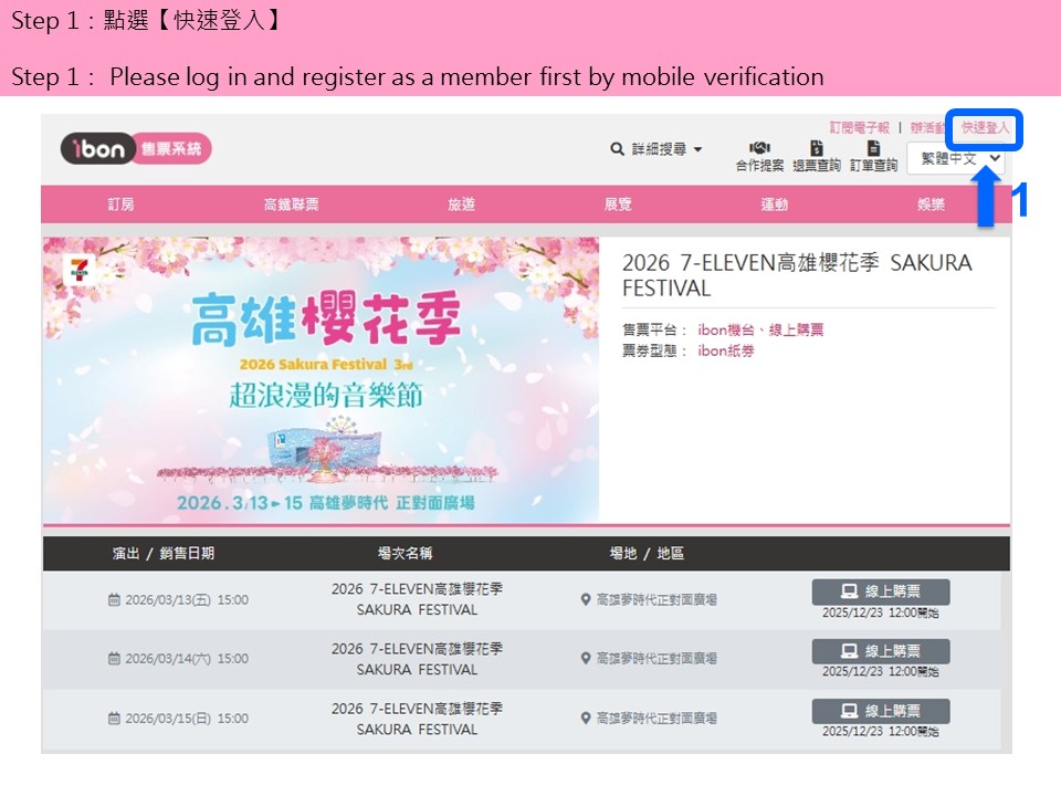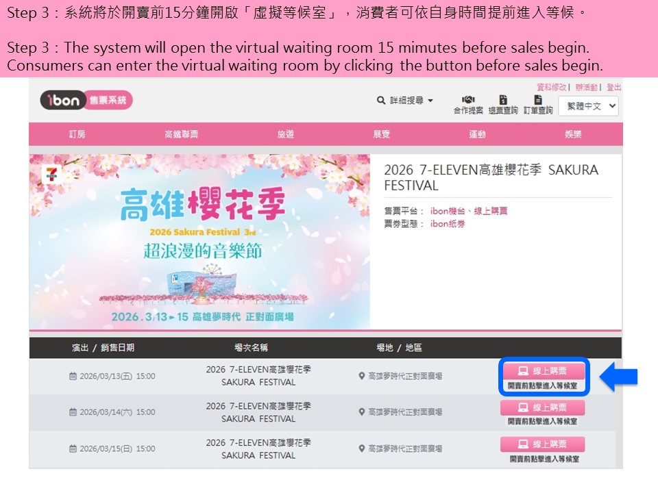 【2026 7-ELEVEN高雄櫻花季 SAKURA FESTIVAL】ibon 網站購票流程
